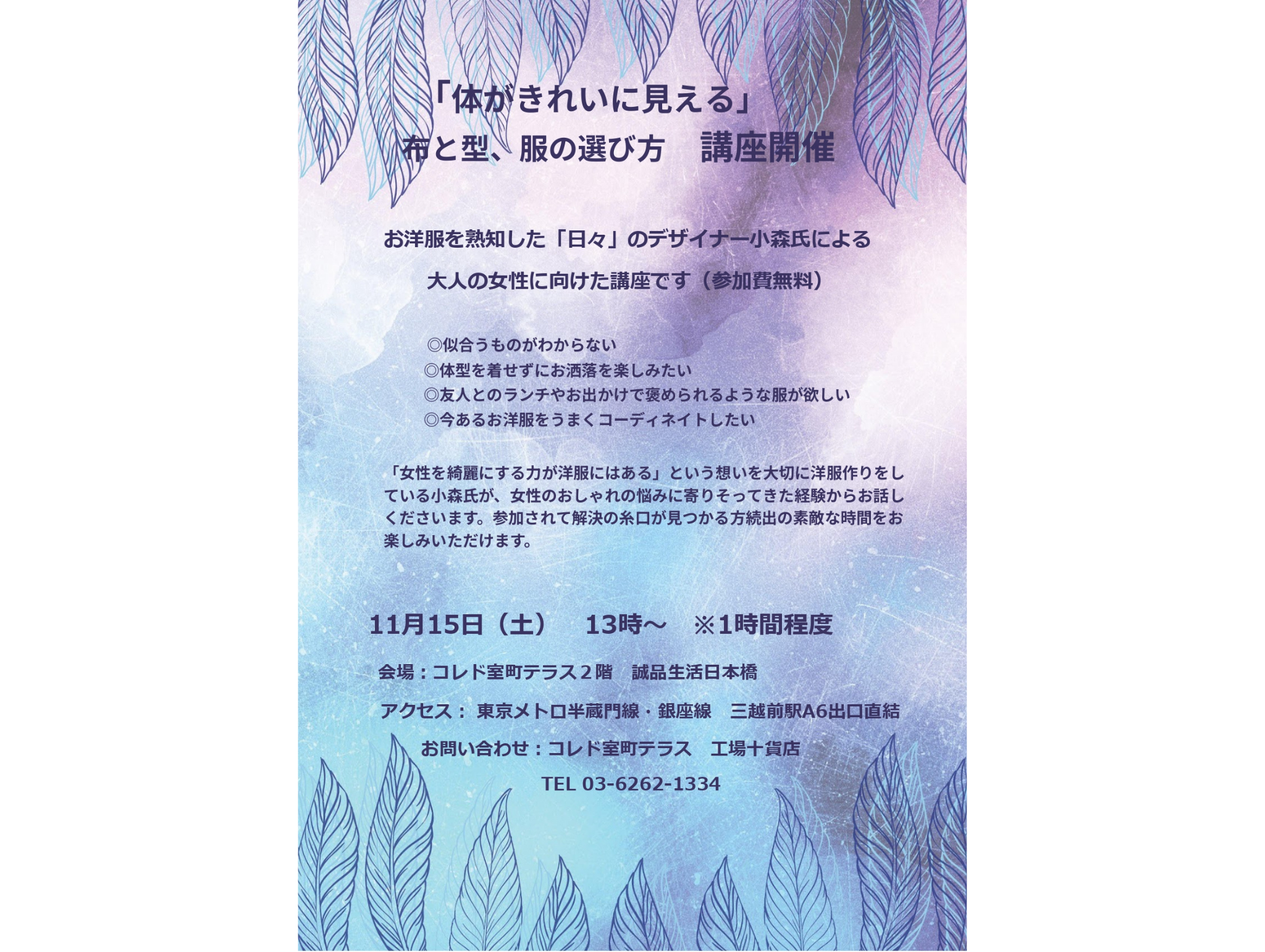 \お洋服の選びかたが変わる/無料・公開講座を開催します