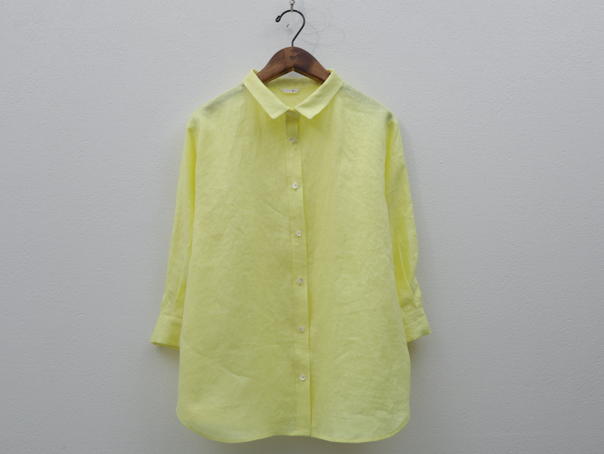リネンシャンブレーの七分袖シャツ