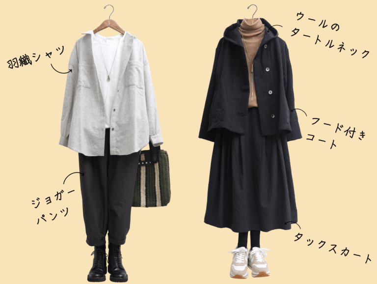 「日々」がご提案する季節のおすすめの着こなし。あなたはどちらのコーディネイトを選びますか?